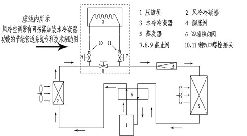 風冷空調按需改裝水冷冷凝器的節能管道系統專利技術制造圖