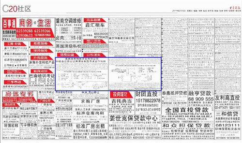 重慶綠色科技開發有限公司在《重慶商報》刊登的廣告《重慶綠色科技開發有限公司向社會公開出讓兩項專利及尋求合作伙伴》