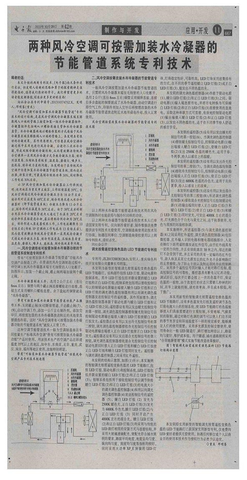 附件:1.《電子報》2013年10月20日刊發文章《兩種風冷空調可按需加裝水冷凝器的節能管道系統專利技術》復印件