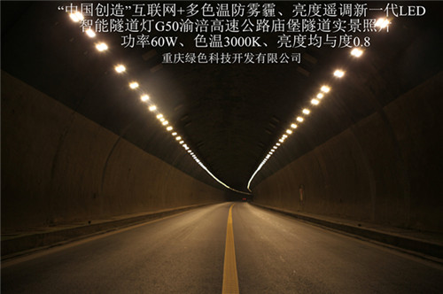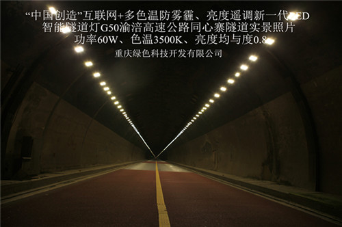 今年5月份,重慶渝涪高速公路有限公司與重慶綠色科技開發有限公司就G50滬渝高速黃草山、同心寨、廟堡隧道LED綠色照明節能改造項目,以合同能源管理模式簽訂了合同。該項目使用“中國創造”互聯網+多色溫防霧霾、亮度遙調新一代LED智能隧道燈及遠程智能控制系統,對原隧道3629盞鈉燈實施綠色照明節能改造。三個隧道的六個隧道單元,總長度為5.5公里,雙邊布燈11公里,是目前國內外隧道照明中使用該產品里程最長、數量最多的綠色照明工程。該工程現已全面竣工并投入使用。