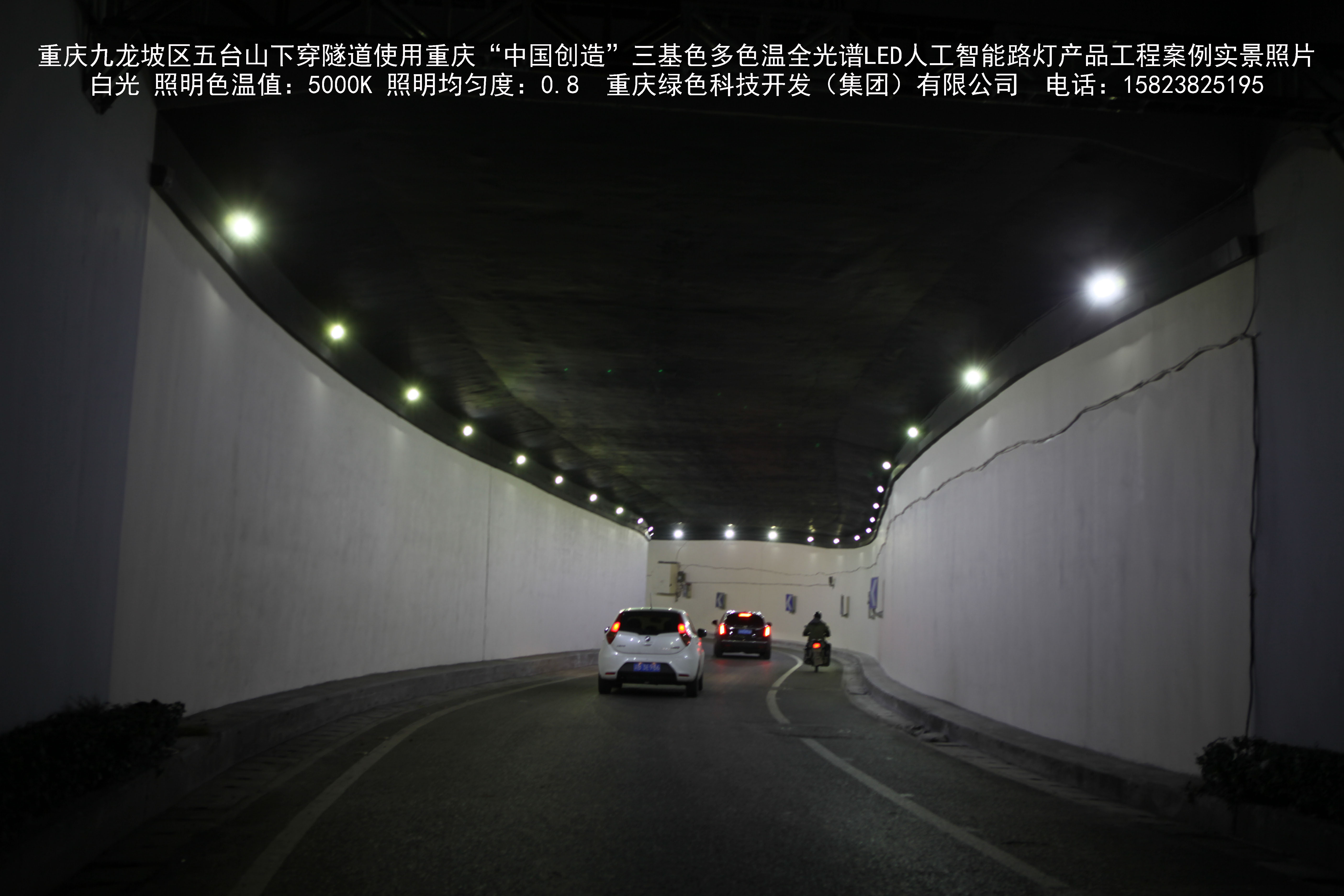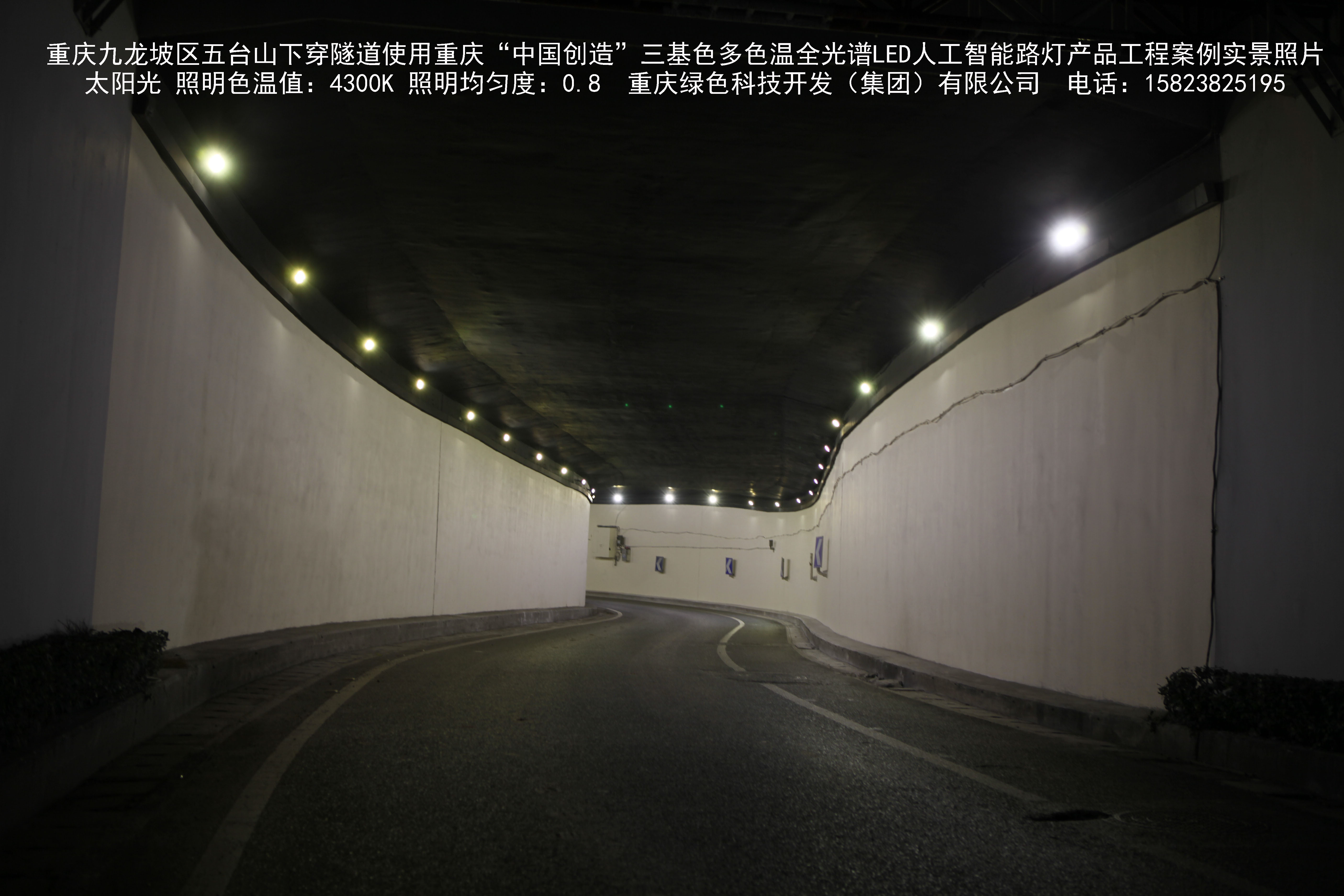 重慶市九龍坡區五臺山下穿隧道使用我司研造的重慶“中國創造” 三基色多色溫全光譜LED人工智能路燈產品工程案例