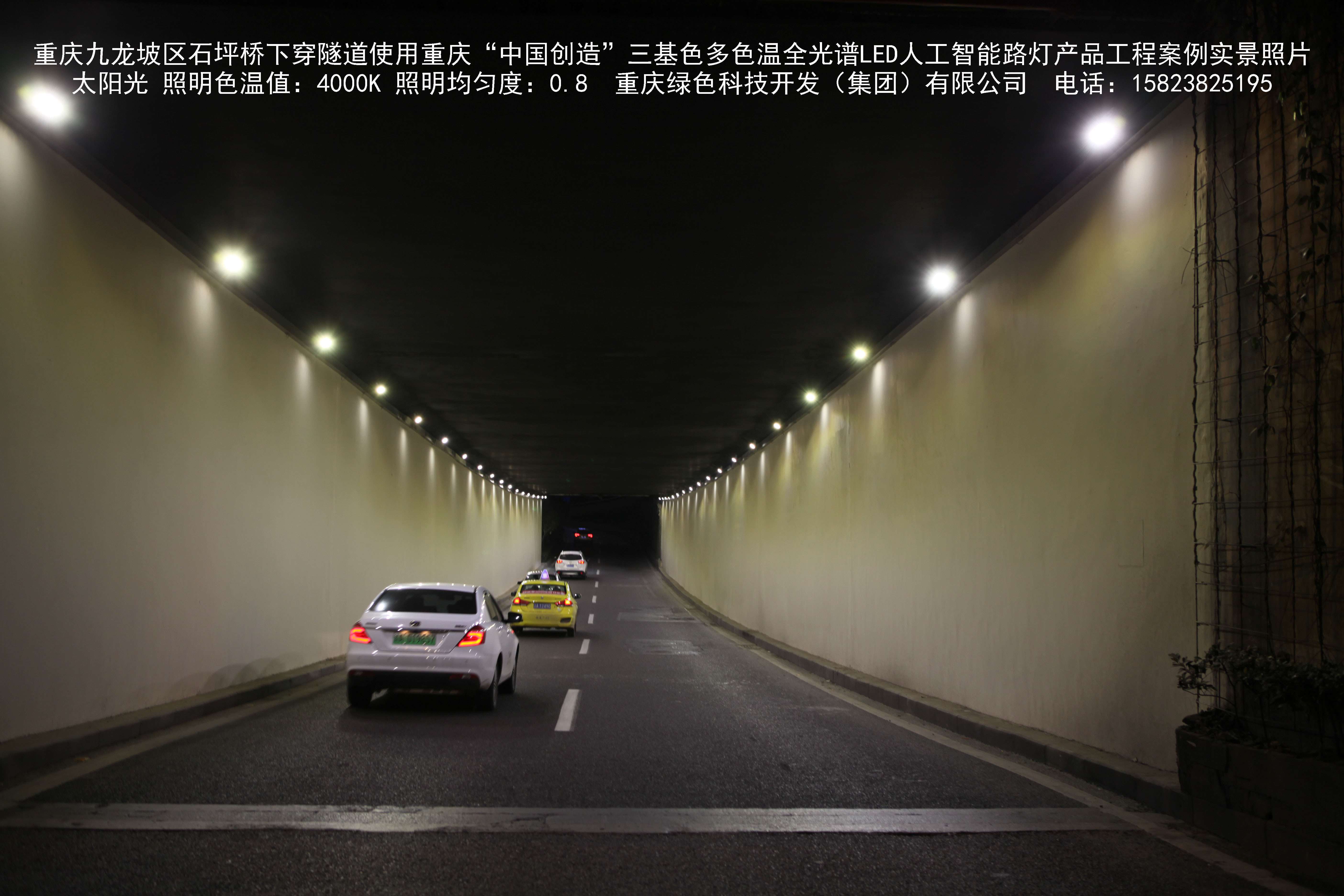 2018年9月,重慶市九龍坡區城市管理局使用我司自主研發制造的重慶“中國創造”三基色多色溫全光譜LED人工智能隧道燈系列產品,實施了石坪橋下穿隧道市政設施品質提升工程。該工程已全面竣工。工程實施后,極大地提高了城市照明清晰度、燈光均勻度、舒適度。通過智能終端實現單燈感知、線纜防盜報警,與原高壓鈉燈相比,節能率60%以上,有效解決了關閉控制回路或間隔關燈方式造成的照明暗區,確保行人和車輛通行的安全,實現城市路燈照明系統的智能化管理,推進了智慧城市建設。