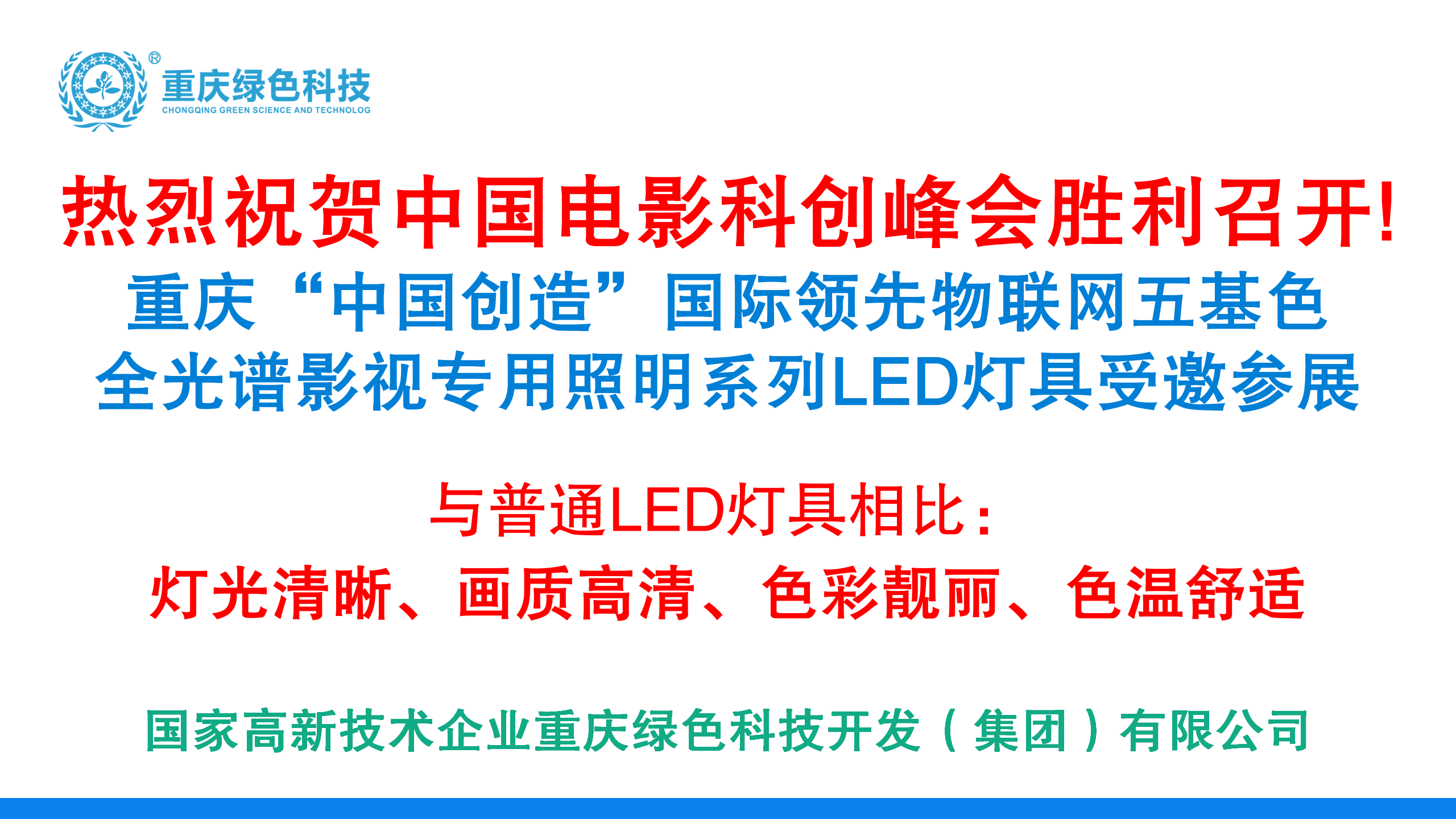 熱烈祝賀中國電影科創峰會勝利召開!重慶“中國創造”國際領先物聯網五基色全光譜影視專用照明系列LED燈具受邀參展